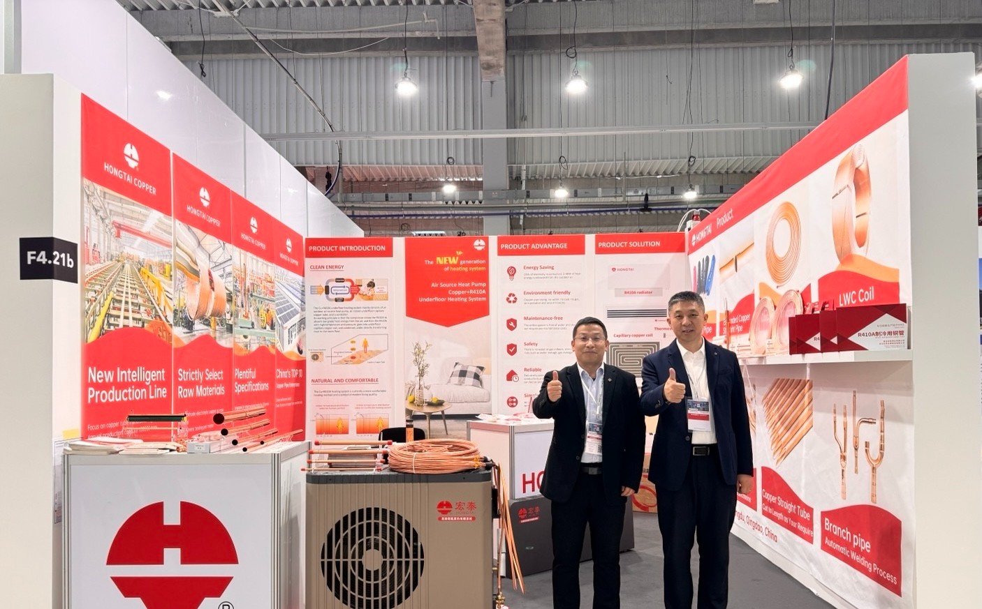 宏泰攜全系列銅管、制冷配件以及公司新品部天氟地氟冷暖兩聯(lián)供系統(tǒng)亮相此次展會。